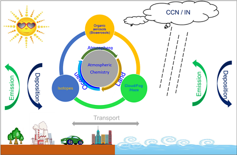 研究滨海地区陆地-海洋相互作用过程中的大气环境过程,探讨海洋表面释放的气体对滨海地区大气气溶胶形成过程的影响,阐明大气、海洋与陆地之间营养物质的交换和转化过程。具体研究内容包括: