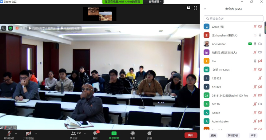 Invited by Prof. Wang Zheng from the Center for Advanced Science of Isotope of our department, Prof. Ariel Anbar from the Arizona State University brought an online seminar entitled “Redox Revolutions on Earth and Beyond” on November 5th, 2020. The seminar was broadcasted through Zoom internet meeting and Bilibili livestreaming. More than 250 people joined this online seminar.