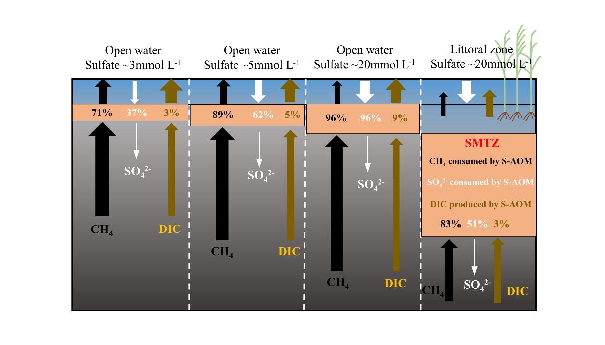 Coastal wetlands are important sources of methane emissions, and understanding the mechanisms that control methane emissions from coastal wetlands is of great signifcance to global warming. In this study, spatiotemporal variations in pore-water geochemistry (concentrations of SO42-, CH4 and DIC as well as δ13C-DIC and δ13C-CH4) in the Beidagang wetland, Tianjin, China, were investigated to unravel factors controlling the role of anaerobic oxidation of methane in coastal wetlands. Results highlight the importance of sulfate-driven anaerobic oxidation of methane in coastal wetlands.