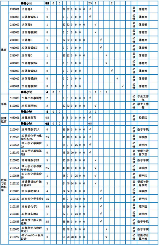 标准学制四年,弹性学制三至六年。毕业最低修读162学分(其中必修142学分+选修20学分),达到学士学位授予条件者,授予理学学士学位。
