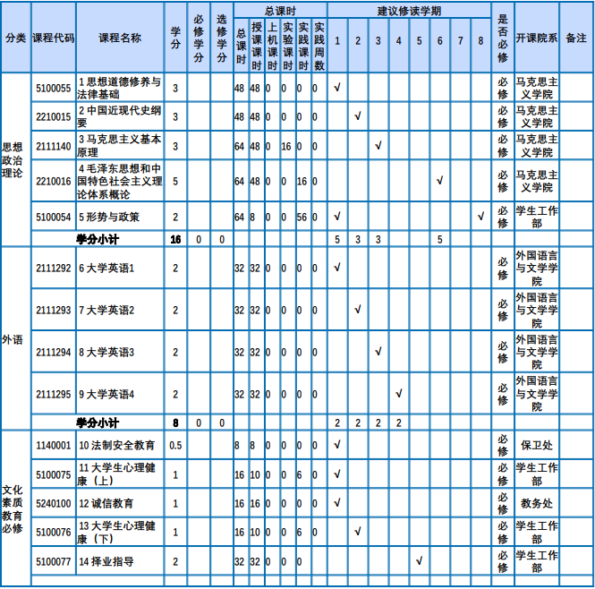 思想道德素质:具有正确的政治立场,正确的世界观、人身观和价值观,热爱祖国,遵纪守法,诚信为人,品行端正,具有健全的人格和社会责任感,具有高尚的道德品质,具有强烈的爱国主义情感、高度的民族自尊心和社会责任感,具有集体主义精神、合作精神和爱岗敬业精神。