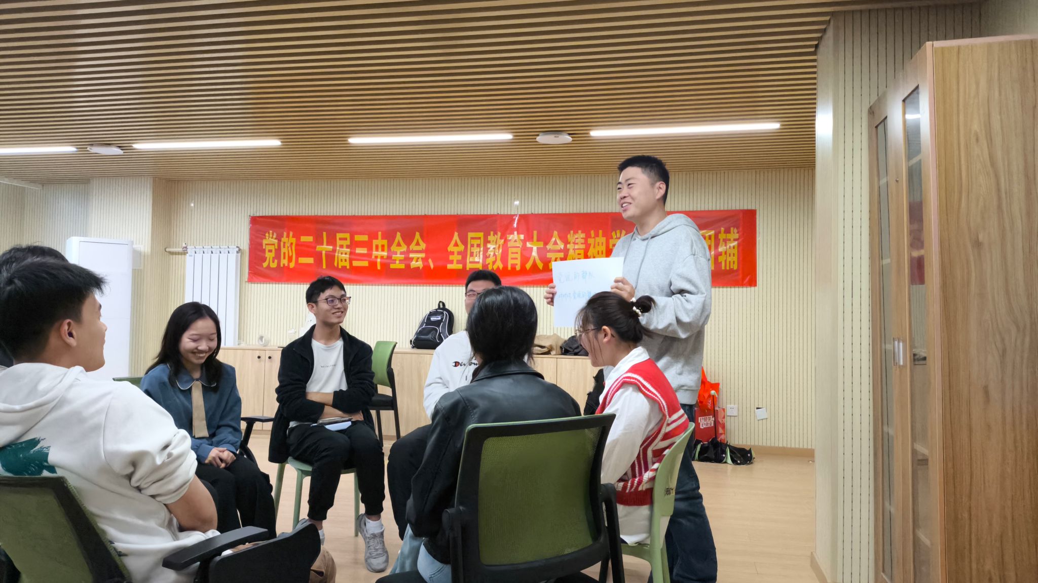 2024年10月18日下午,地科院2023级研究生第一党支部参加了由生命科学学院辅导员、党建指导老师王茜组织并主持的“学习党的二十届三中全会、全国教育大会精神专题团辅”活动。活动在鹏翔2斋一站式学生社区202室顺利举行,医学院和自动化学院的党支部也共同参与了此次活动。