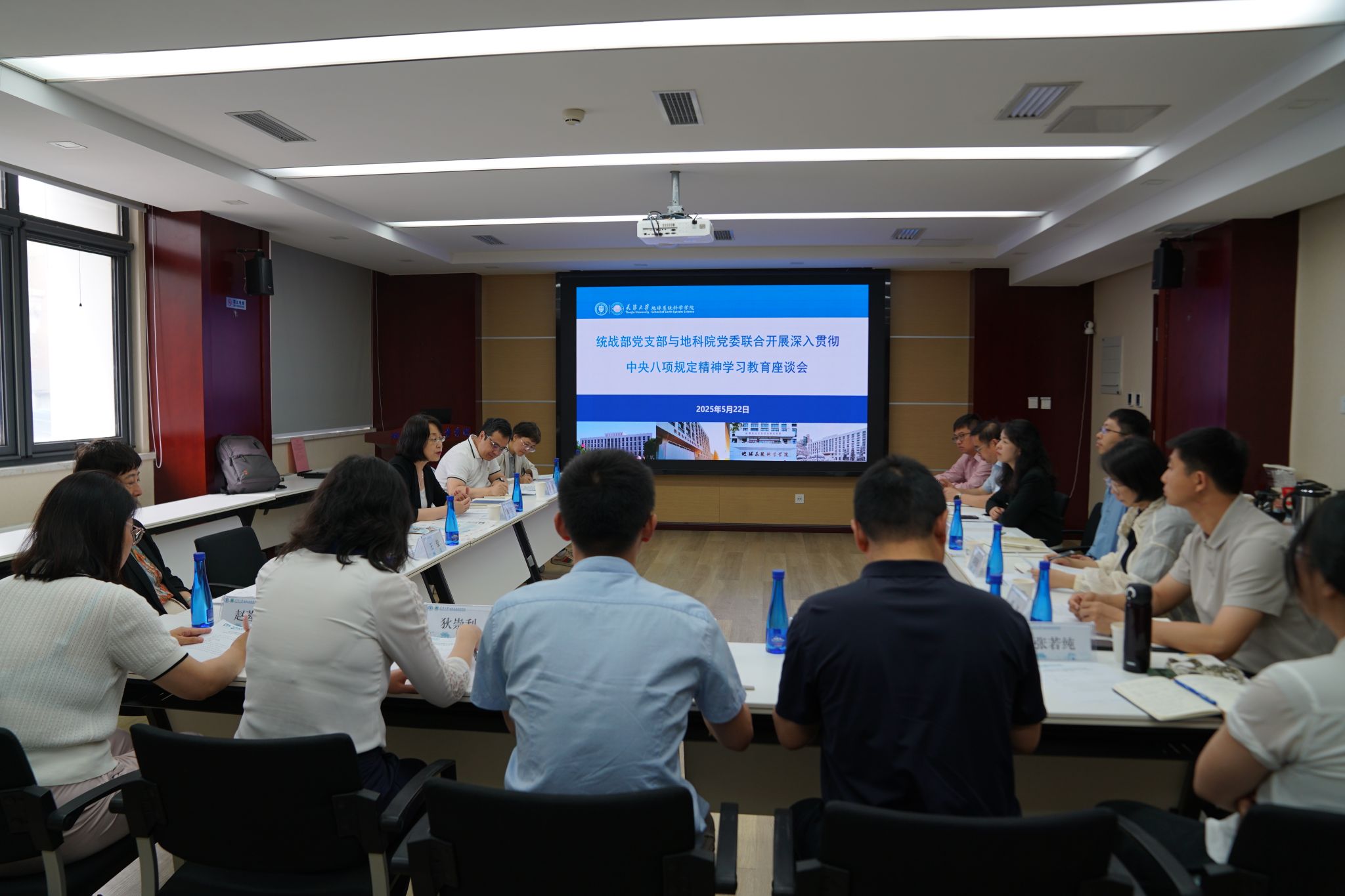 为深入贯彻落实中央八项规定精神,5月22日,天津大学统战部党支部与地科院党委联合举办深入贯彻中央八项规定精神学习教育座谈会。校党委常委、统战部部长、党支部书记张俊艳,地科院党委书记徐延平,常务副院长李思亮,副院长郎赟超、李晓东、刘波,以及党委委员、全体教工党支部书记齐聚一堂,共学共研、共商发展。此次座谈会由统战部副部长刘涛主持。