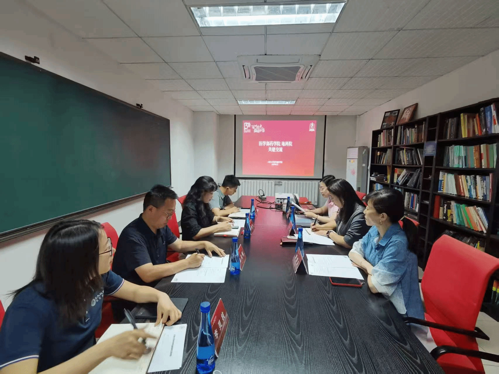 6月5日下午,我院与医学部药学院党委联合开展“健康中国 美丽地球”党建共建交流活动,研讨推动党建和业务深度融合,以高质量党建引领高质量发展。药学院党委书记吴晶、院长刘秀云,地科院党委书记徐延平、副院长刘波,药学院党委副书记李楠,党委委员、教工第一党支部书记黄剑辉,地科院教工第一党支部书记余光辉,双方组织员共同参加交流活动。