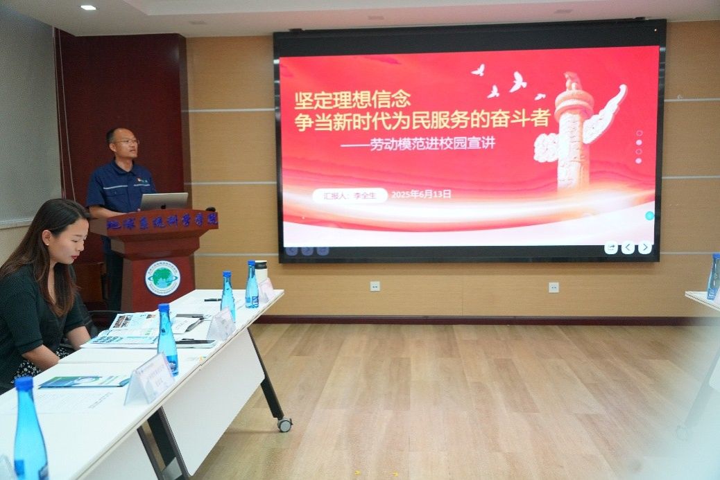 天津水务集团有限公司引滦尔王庄分公司泵站管理所副所长李全生同志为与会党员带来了题为《坚定理想信念、争当新时代为民服务的奋斗者》的微党课。李全生同志从一座城的“水之痛”与“水之盼”回顾天津市往昔的水资源短缺和水质较差的问题以及引滦入津工程改写天津“水命运”的背景;他结合自身工作之初的迷茫、工作中遇到的挑战和机遇、师傅的榜样力量、和“两丝”背后的精神诠释了引滦精神的核心;随后,谈及自身角色转之后,他依然牢记与城市的“水之约”,坚守在保障供水安全的一线,为百姓用水贡献力量;最后,他强调科研工作与引滦精神是相通的,勉励同学们要秉着“把每一件小事做到最好”和“遇到困难不退缩”精神,践行时代使命、为科研事业贡献力量。