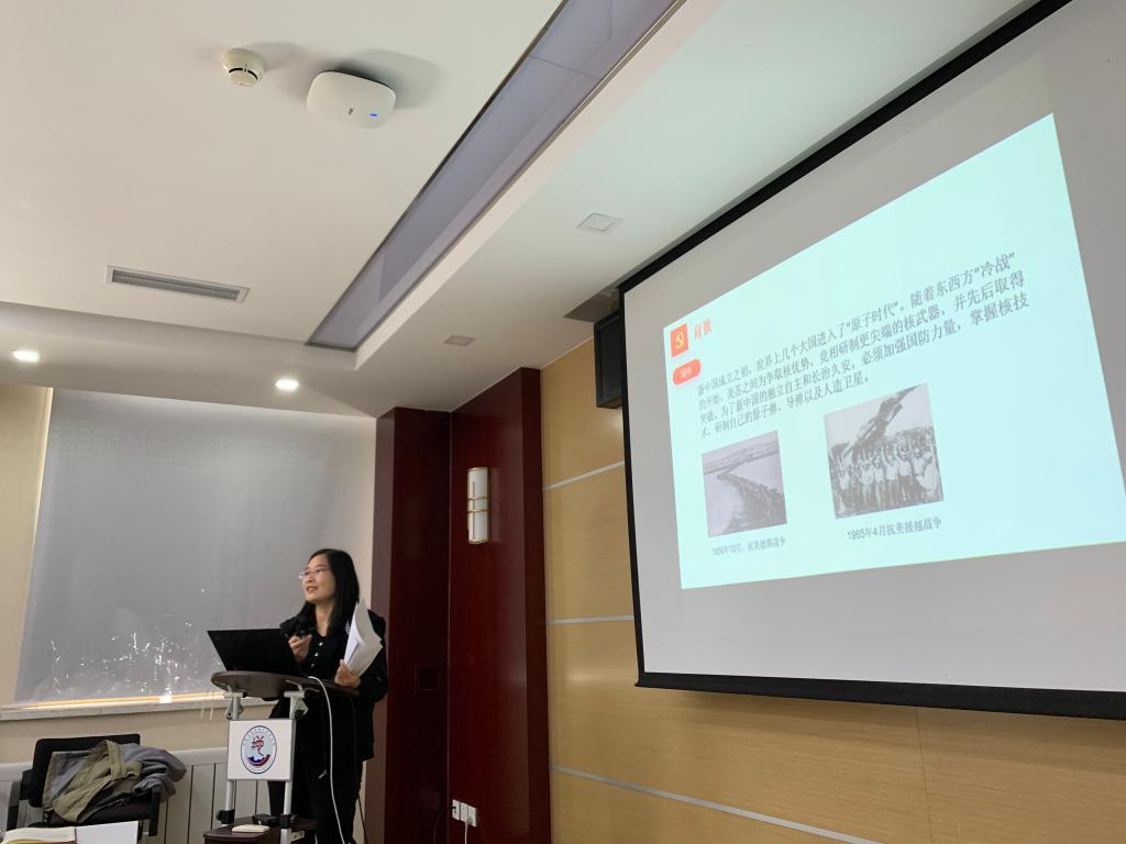 李笑博讲述中国在探索两弹一星的建设过程中的艰难历程及涌现出的功勋,形成的“两弹一星精神”:热爱祖国、无私奉献,自力更生、艰苦奋斗,大力协同、勇于登攀。她与支部党员共勉,要在新时代大力弘扬“两弹一星”精神,努力在平凡的岗位上实现新突破。
