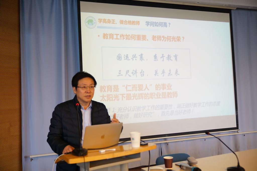 刘丛强院士以合格教师需要具备的素质作为切入点,深刻阐释“四有”好老师的内涵,不仅要在教书育人上下功夫,更要关爱学生成长,做到谨言慎行。他强调,教育是“仁而爱人”的事业,“大学之道,在明明德,在亲民,在至于至善”。结合学院近三年在教育教学方面的工作实践,刘丛强院士指出,学院全体教职工要凝练并践行ESS(地科院)教师品格,进一步加强师德师风建设,努力在引导学生参与课堂、提升课程系统连贯性、增强课程内容的高阶性、创新性、关注学生学业就业、关爱学生综合成长等方面取得新提高。