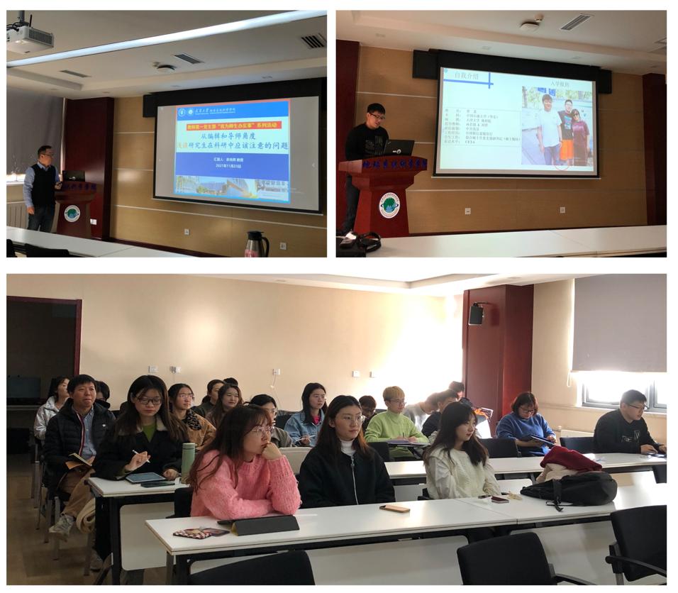 教师第一党支部党员余光辉教授和2021级研究生党支部党员、博士研究生曹蜚分别做了题为“从编辑和导师角度浅谈研究生在科研中应该注意的问题”和“研究生学习经验分享”专题报告。余光辉教授既是知名学术期刊编委,也是研究生导师,他从两种不同身份的角度出发,分享了论文写作、投稿和修改经验、技巧,以及研究生学习过程中的注意事项。曹蜚同学结合自身经历,从学业安排、学生工作和社会服务等方面交流了感想与体会。