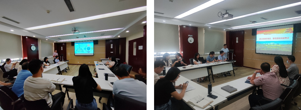 党委委员李晓东讲授党课《践行地理学使命,服务国家战略需求》,勉励地理工作者要加强综合研究,应用先进技术,拓宽应用领域,为经济社会的可持续发展作出应有贡献。邓君俊从生态环境保护实践谈“以人民为中心”重要论述学习感想,每个人都是生态环境的保护者、建设者、受益者,践行绿色低碳生产生活方式、积极参与生态环境保护是每个人义不容辞的责任和义务。