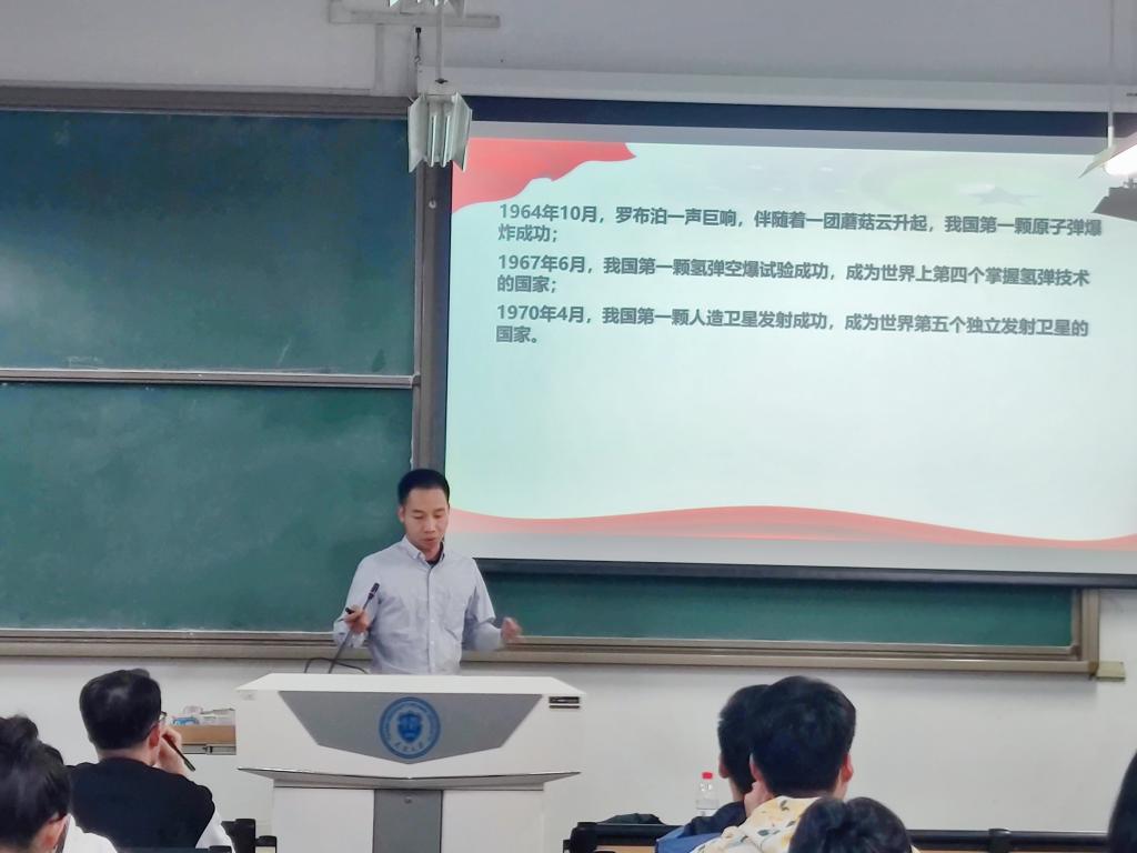 10月27日,张坚超讲授《“两弹一星”科学家精神学习交流》主题党课,以邓稼先、何泽慧、于敏等前辈科学家前仆后继与时间赛跑、铸就辉煌的例子,并结合自身经历,号召新时代的研究生党员同志,应积极主动肩负起新时代赋予的重任,为实现中华民族伟大复兴的中国梦作出自己的贡献。