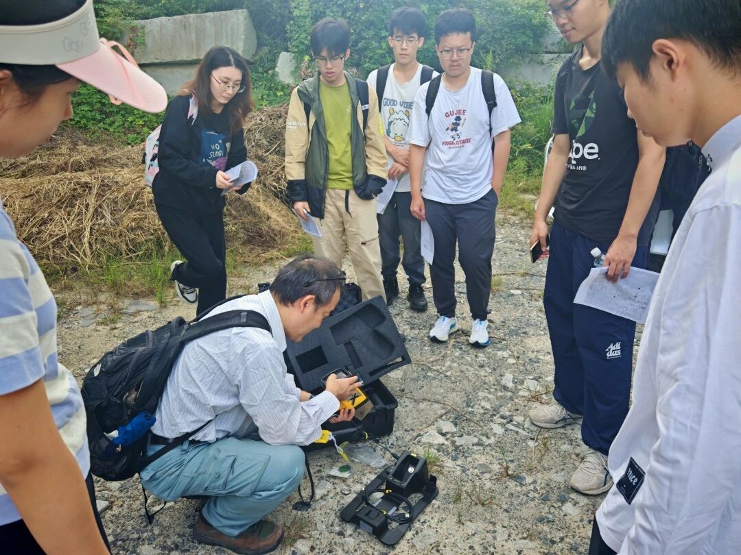 在东京大学高桥嘉夫教授带领下,团队前往筑波山及周边区域,使用便携式能谱仪测定花岗岩中稀土元素含量。高桥教授结合实测数据,讲解稀土矿床形成机制,剖析降水、温度等气候因素与坡度、坡向等地形条件对稀土元素富集的影响,并指导学生通过“气候条件+花岗岩风化程度”预判日本潜在稀土矿床发育区域,实现理论知识与实操技能的深度融合。
