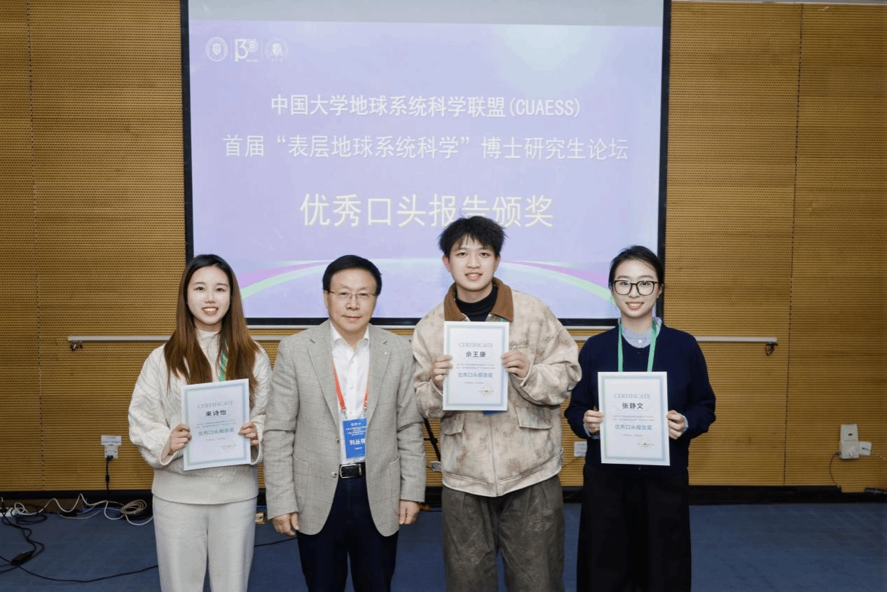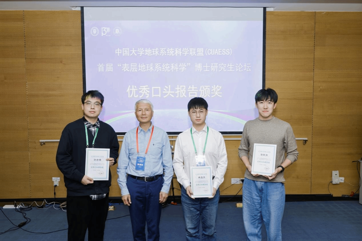 分论坛上,35位经过组委会遴选的优秀博士生围绕“地球系统过程”“地球系统模拟”“地球系统治理”三个核心方向进行了精彩的口头报告,集中展现了我国地球系统科学领域青年学者扎实的科研功底、敏锐的问题意识与开阔的国际视野。每个分论坛均配备了由相关领域教授组成的点评专家组,现场互动热烈,学术氛围浓厚。最终,9个报告获评优秀口头报告,符淙斌院士、刘丛强院士、陈德亮院士为获奖同学颁奖。