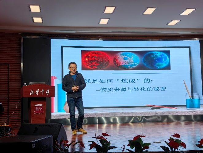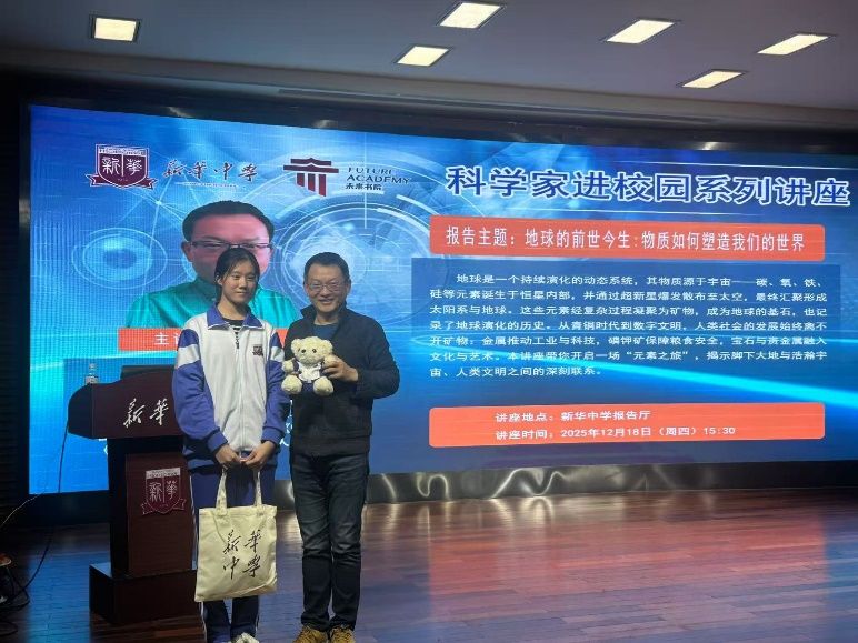 2025年12月18日,我院滕辉教授应邀走进新华中学,为师生们带来题为《地球是如何“炼成”的:物质来源与转化的秘密》的科普讲座,引领大家沿着时间的长河,回望地球的诞生与演化,感悟物质与自然的深刻联系。