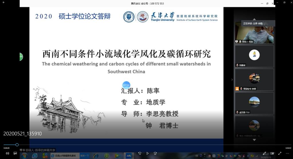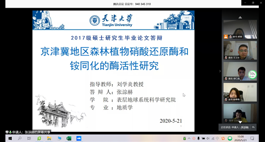 5月21日下午,天津大学地科院本年度疫情防控期间首场线上博士论文答辩如期举行。答辩人为地科院2016级博士研究生覃蔡清(导师:李思亮教授、Susan Waldron教授)。时处疫情防控阶段,我院借助“腾讯会议”在线平台顺利完成了首场线上研究生学位论文答辩。