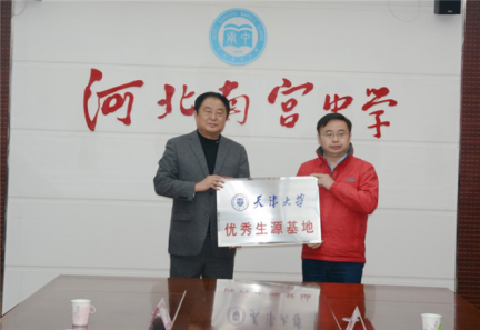 访问中,李晓东副院长代表天津大学为河北南宫中学授牌“天津大学优秀生源基地”,希望双方加强合作交流,深化教学改革,完善人才培养,为社会输送更多品学兼优的高素质人才。