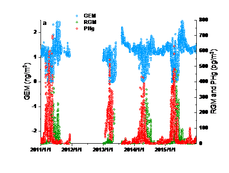 图1. 北极Alert站大气形态汞浓度的连续观测