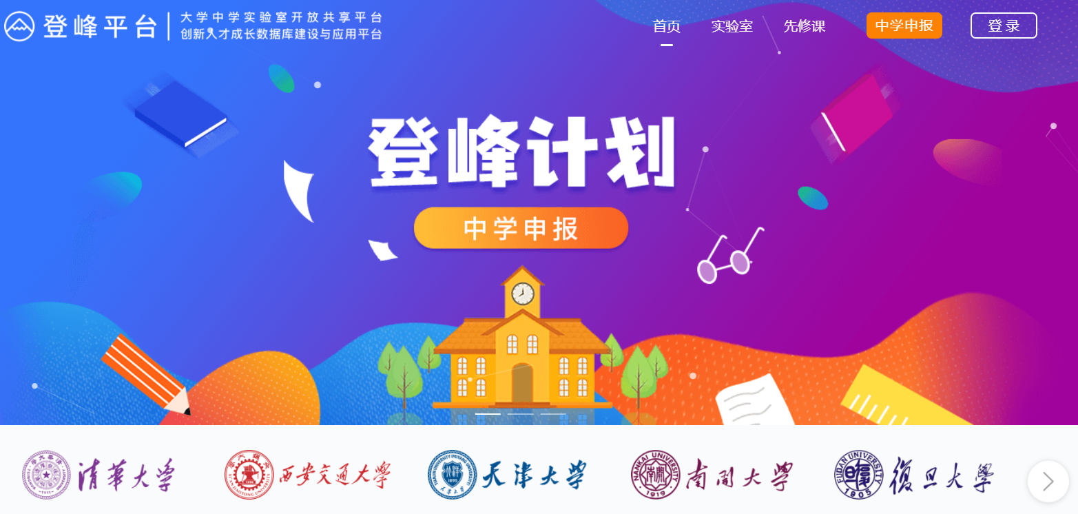 学院会协助设计“实验室专区”(含线上线下活动),并在“登峰平台”上进行展示;为中学可以批量为全体中学生开通登峰平台学习账号,根据实际情况安排学生的线上线下学习计划;在条件允许的前提下,邀请中学生参加实验室线上/线下开放活动,包括:校园和实验室参访、大师讲座、招生交流等内容。