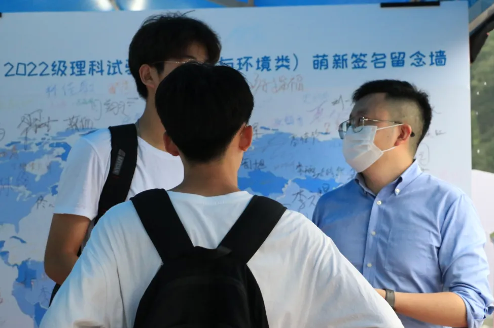 院长、书记们带头来到迎新帐篷,向工作人员了解迎新流程,询问报到进展;与初入校园的新同学亲切交流,询问家乡和路途情况,向他们表示热烈欢迎。