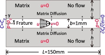 传统理论上,溶质运移遵循费克定律,可以用著名的对流-弥散方程(ADE)来描述,对于瞬时注入的溶质,其穿透曲线符合高斯分布。但近30年来基于野外试验、室内实验和数值模拟实验结果,研究者逐渐发现污染物在裂隙岩体中的运移常出现拖尾现象(非费克溶质运移典型特征之一),造成污染物滞留时间超出预期;并且污染物拖尾现象可以用幂函数(C=t-n)来表征,即污染物浓度(C)随时间(t)呈幂指数降低。同时,野外实验和室内实验结果都表明幂指数n变化范围较大。近年来,大量研究开始关注引起n变化的原因和机理,其中裂隙-基质系统中的物质扩散与交换是不可忽略的因素之一。然而裂隙-基质交换如何影响n变化的程度还不明晰,尤其是考虑不同地下水流速和基质宽度。