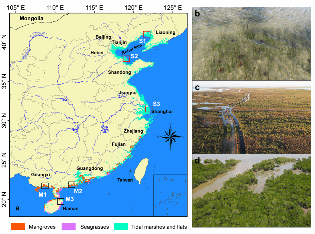 该研究成果强调了保护和恢复蓝碳生态系统在变化缓解中的重要潜力,为评估气候变化和人为活动对蓝碳生态系统碳储量影响提供了基准数据。该研究受国家自然科学基金项目(42171462, 42225101, 42141014)资助。