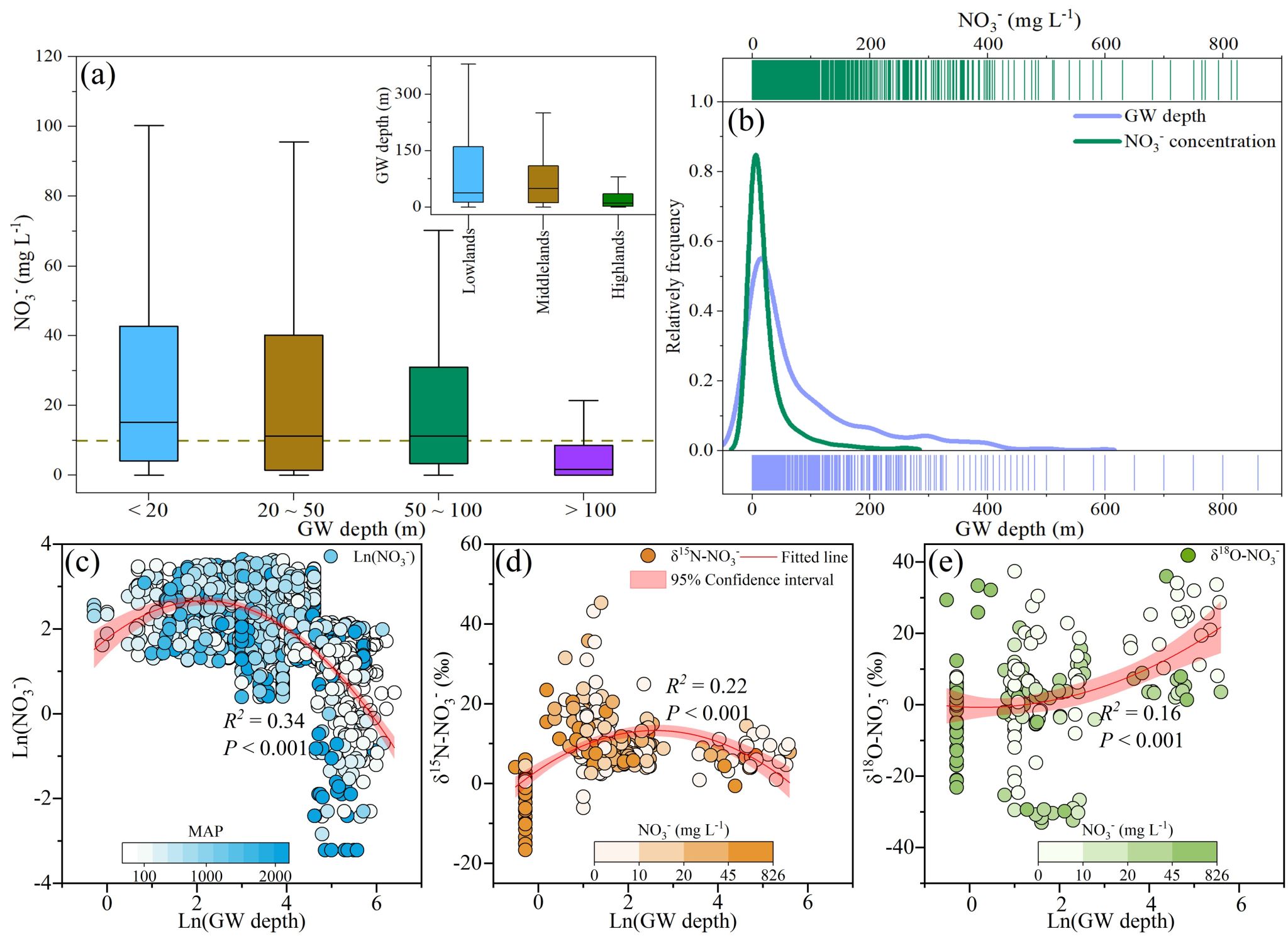 氮污染已成为全球地下水质量恶化的主要环境问题之一,尤其在农业集中区,长期的大量施肥和污水排放导致活性氮不断渗入地下水系统。中国作为全球氮肥施用量较多国家,其地下水中硝酸盐浓度的空间分布格局以及与气候条件、地理因素和人类活动如何相互作用影响地下水中氮素浓度,有待深入研究。
