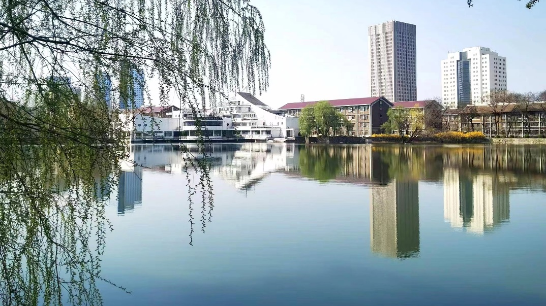 春和景明,青年湖碧波荡漾,湖畔的绿柳刚刚抽芽,新绿与波光相映成趣,一派生机盎然,万物欣欣向荣。“一年之计在于春”,大学生活动中心也如扬帆的白船,于美好春光中启航。