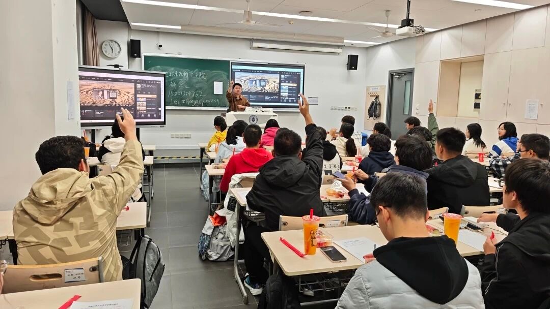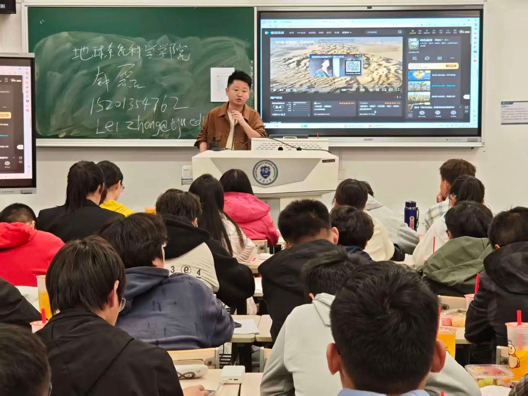 互动环节气氛热烈,同学们围绕植物智能、城市生态建设等话题积极分享感悟,钟磊老师以“唠嗑”式的轻松语调解读地理科学,针对“地理科学是否只是环游世界、勘探奇观”等认知误区耐心拆解,将专业知识融入日常对话,让同学们清晰意识到:地理科学就在身边,与每个人的生活息息相关。