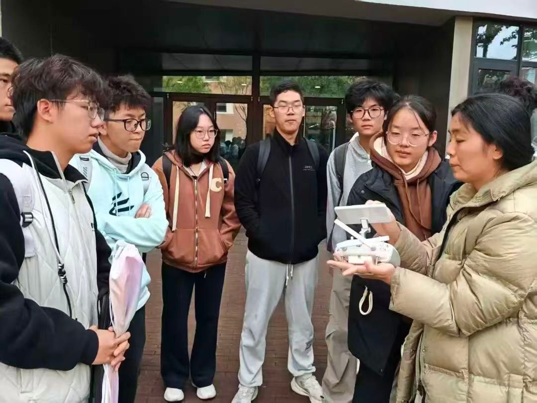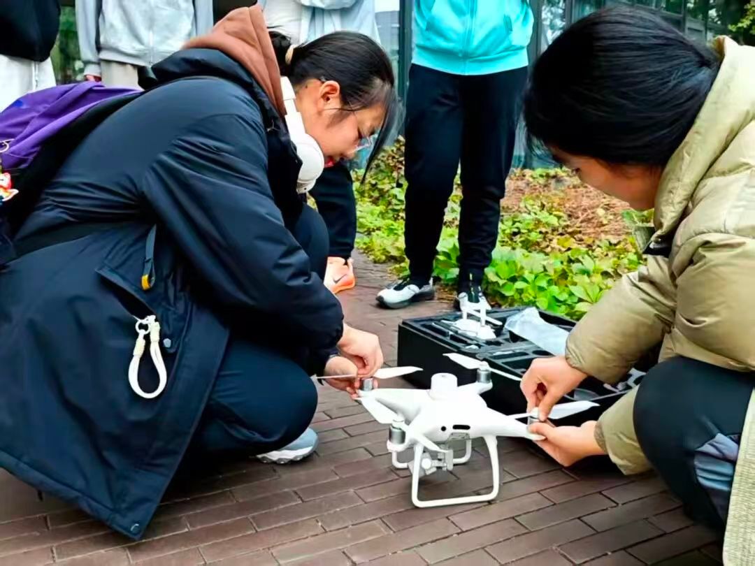 互动环节,“遥感图片猜河流”游戏掀起热潮。同学们在趣味互动中深化遥感图像解读能力与中国河流知识储备。最后,大家转至户外,韩老师指导大家安装遥感专用无人机桨叶、学习飞行操作要领,亲手实践让同学们真切触摸到遥感技术的实践魅力。