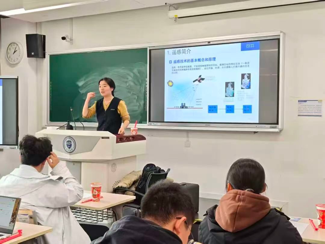 韩老师层层深入传递知识,她先阐释遥感概念与技术历程,再通过吉林一号卫星监测视频、卫星系统图像,具象化 “人工智能 + 遥感” 能力与地球观测网络规模;还以实例凸显雷达遥感优势,结合多案例解读影像解译方法,并融入生物学知识打通学科关联。最后,她通过植被监测、森林病虫害防治、识别 “矿山刷绿漆” 等案例,及技术在国防、政府规划、企业运营及大众生活中的广泛应用,以及与人工智能深度融合的广阔前景,让同学们看到学科发展潜力。