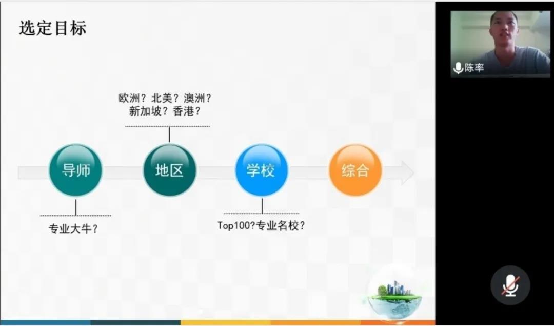 就职于宁波银行的范艳兵与大家进行了线上分享,范艳兵结合自己的求职经历和工作岗位,为大家介绍了相关银行岗位笔试和面试的内容与技巧,以及为大家解答了岗位待遇、职业发展前景等问题。目前在香港大学地理系攻读博士学位的陈率,从导师、地区、学校的选择等综合因素为大家做了详细分析与解读,也谈到目前国外疫情形势严峻,去香港读博不失为一种好的选择。此外,他还详细地为大家介绍了香港大学博士培养方式、奖学金待遇等问题。就读于北京大学地球化学专业的单冰师兄,用幽默诙谐地方式向大家讲述了自己联系导师的经历,并为大家解答了北京大学博士申请条件、办公实验环境、毕业要求等大家关心的问题,并建议计划读博的同学提早准备。