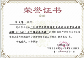 张文馨,中共党员,天津大学地球系统科学学院2023级博士研究生,2025年博士研究生国家奖学金获得者。她以加权成绩90.66、学术评价得分87.11(年级第一)的优异成绩,连续两年获评一等学业奖学金,曾获“天津大学三好学生”及学院“求真盈趣奖学金”。她的研究方向聚焦于城市大气边界层中羟基脂肪酸同分异构体的分子分布、影响因素与来源解析。目前,她已以第一作者身份在SCI一区/二区TOP期刊《Atmospheric Chemistry and Physics》与《Science of the Total Environment》各发表论文一篇,多次参与国内外学术会议并斩获优秀口头报告奖项。