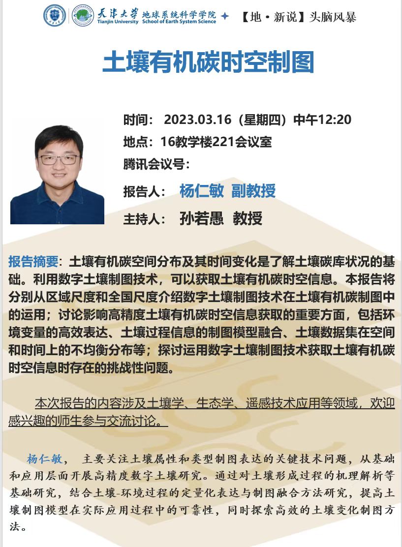 本次报告的内容涉及土壤学、生态学、遥感技术应用等领域,欢迎感兴趣的师生参与交流讨论。