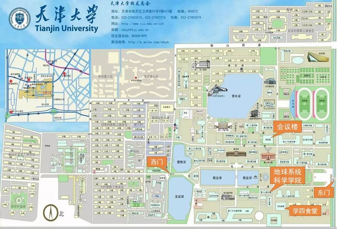 图 天津大学(卫津路校区)会议楼、地球系统科学学院、食堂及校门位置