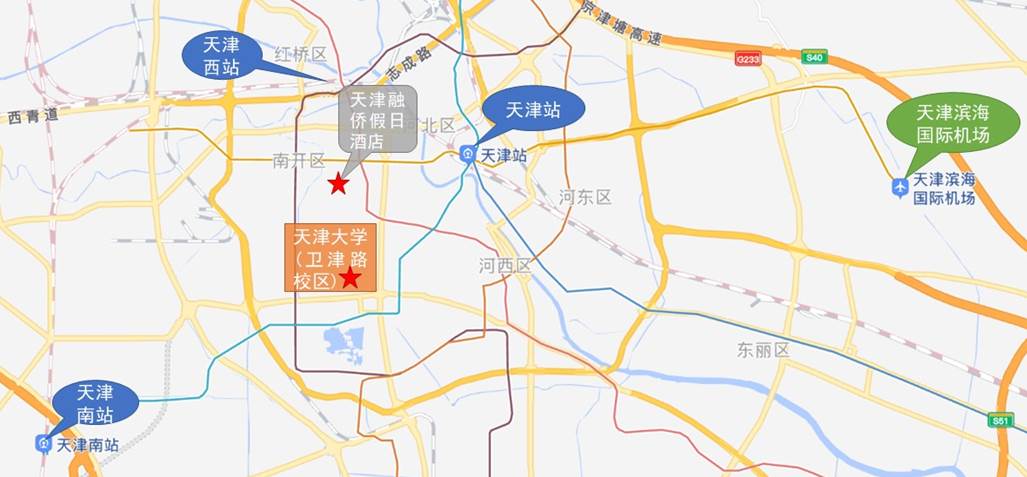 (4)天津南站到天津大学卫津路校区(16公里):乘出租车价格约50元;707路公交(海光寺公交站方向)到八里台站下车,步行299米至天津大学(卫津路校区);地铁3号线(小淀方向)到天塔站(B口)下车,转乘12路(或643/713/832/859路)到八里台站下车,步行299米至天津大学(卫津路校区)。