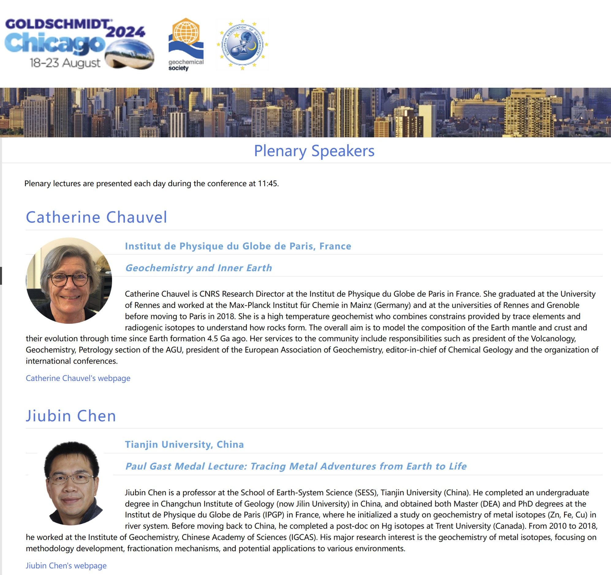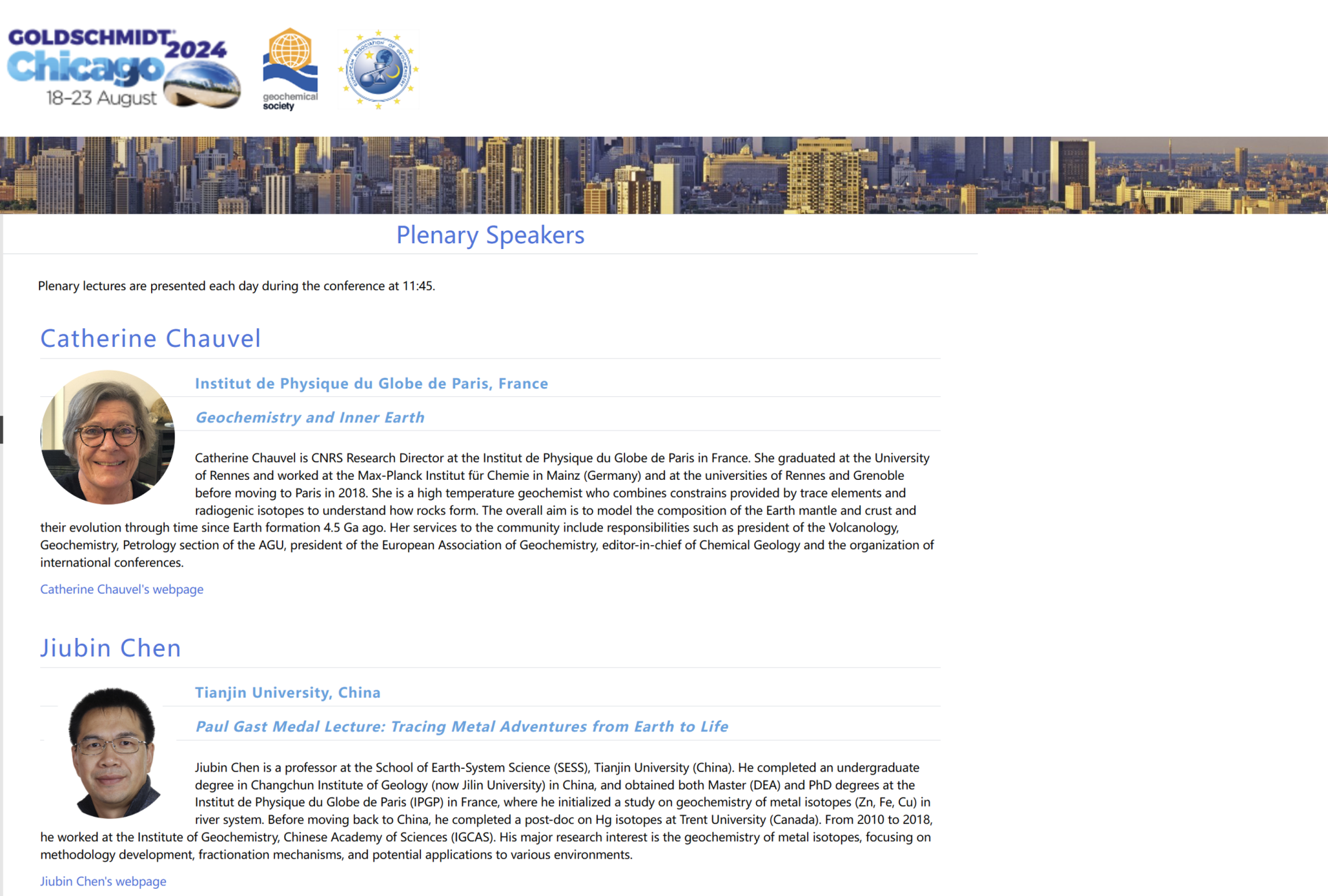 2024年Goldschmidt国际地球化学年会官网信息:https://conf.goldschmidt.info/goldschmidt/2024/goldschmidt/2024/meetingapp.cgi/ModuleMeetingInfo/Plenaries