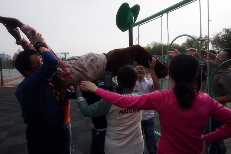 10月9日下午,地科院教学科研、实验技术、行政管理等多个岗位的近20名老师来到卫津路校区心理素质拓展基地,进行了主题为“无畏挑战,携手向前”的集体素质拓展活动。现场团结友爱,笑声鼓励声不断。