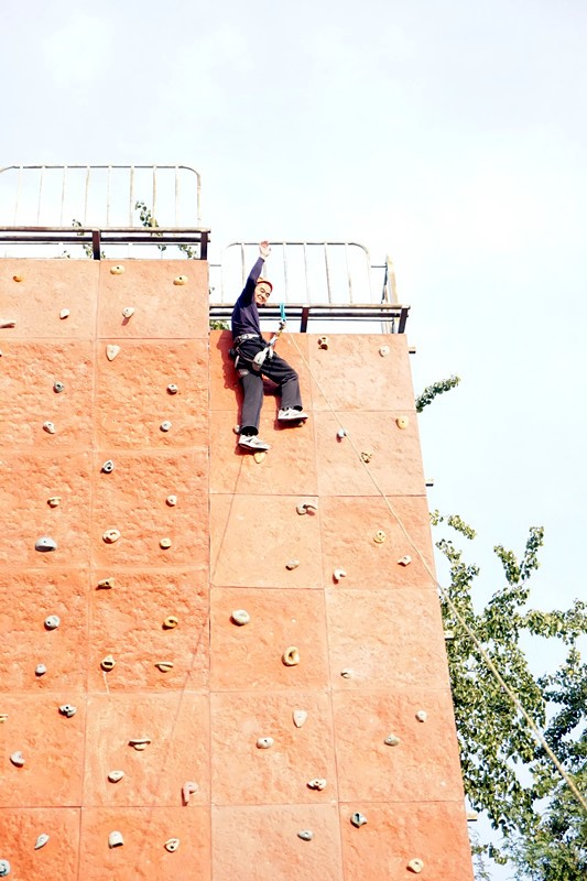 参加活动的教师组成了“地表最强战队”和“猛龙过江”两只队风完全不同但实力都不容小觑的战队,一起完成了精彩纷呈的素拓项目:思想统一、步调一致向前的毛毛虫比赛;集思广益、通力合作的穿越电网;克服恐惧,战胜自我的高空断桥和耐力攀岩。默契培养、团队合作、自我挑战、不同的项目体验让地科团队更加融洽、积极向上。