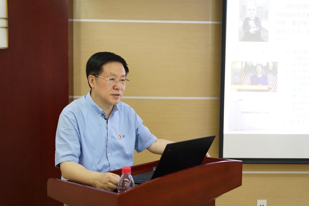 刘丛强院士首先介绍了新型冠状病毒肺炎冲击之下的国际形势、国内社会情况以及此次两会召开的特殊背景及重要意义。他表示,今年全国两会,适逢决胜全面建设小康社会、决战脱贫攻坚之年和“十三五”规划收官之年,又在疫情防控常态化的特殊背景下召开,意义非同一般。随后他结合会议期间自身经历宣讲了两会会议主要内容、要点与亮点,重点介绍了今年两会发布的《政府工作报告》和2020年发展主要目标和下一阶段工作总体部署,还向与会者分享了对习近平总书记在全国两会期间重要讲话精神的学习体会。刘丛强指出:“人民至上不是一句空洞口号,必须落实到具体行动中,要以更高站位、更高效率、更实作风做好各项工作”。最后,他结合高校工作和学院未来发展方向,倡导所有师生员工充分发扬地球系统科学特色,教研并重,加强基础、前沿和战略研究,深化交叉、融合和集成,让科学有理论贡献、更有社会贡献。