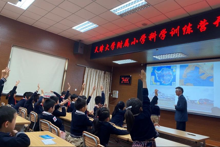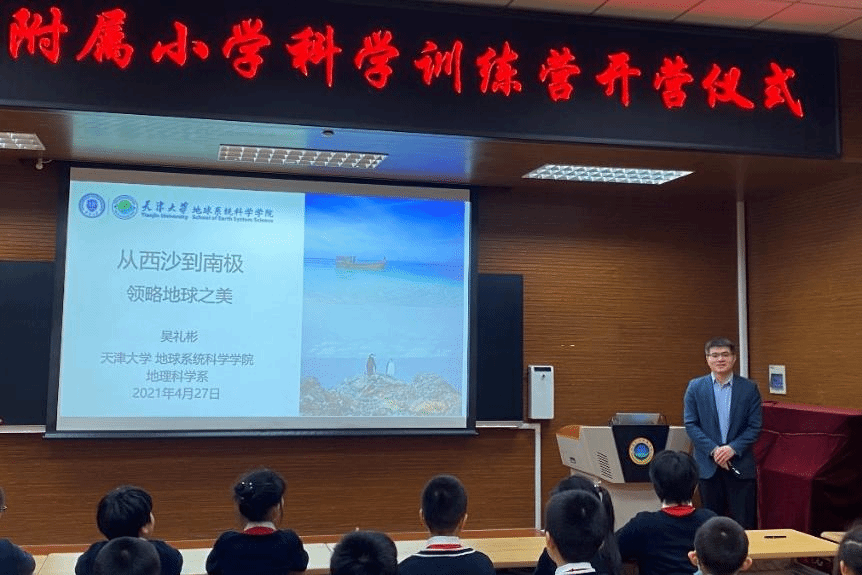 赵剑博书记向同学们介绍了天津大学地球系统科学学院,并表示学院会一如既往地支持天大附小的科学活动,让附小的同学能够借助学校得天独厚的学术优势,更加深入领略科学世界的奥秘。