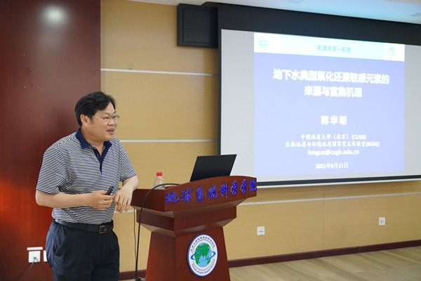 2021年6月11日,应我院邀请,中国地质大学(北京)水资源与环境学院院长郭华明教授来我院进行学术交流,并在16教学楼221报告厅为全院师生作了题为“地下水典型氧化还原敏感元素的来源与富集机理”的学术报告,报告由刘丛强院士主持。