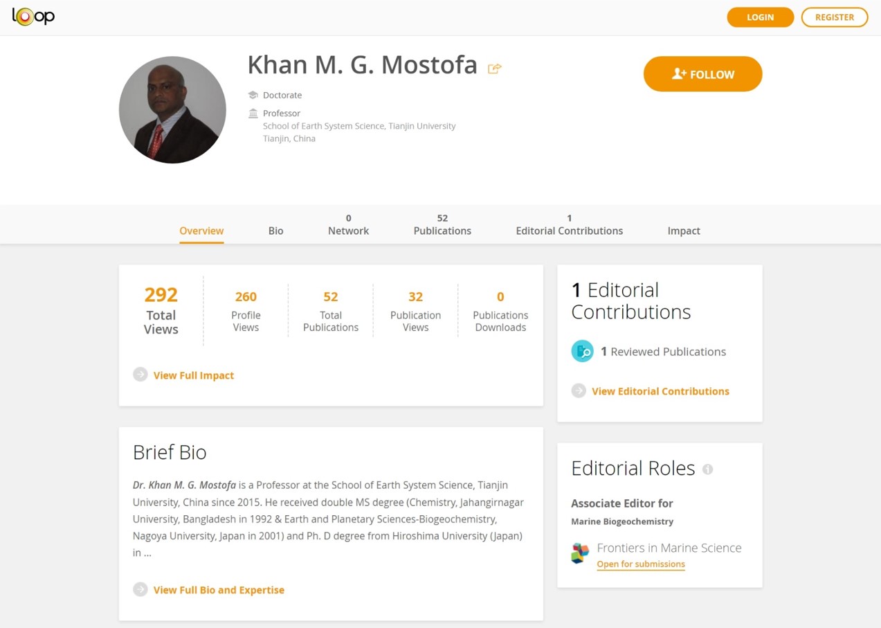 Khan M. G. Mostofa教授主要从事有机物的光化学和生物地球化学,以及它们与淡水、海洋和土壤环境中各种生物、非生物因子的生物地球化学关联。已在Environmental Science & Technology、Science of the Total Environment等期刊公开发表SCI论文70余篇,2013年在Springer出版专著《Photobiogeochemistry of Organic Matter: Principles and Practices in Water Environments》,与世界各地诸多杰出科学家长期合作。
