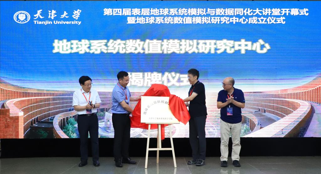 构筑地学新高地,助力地科新发展。7月23日上午,在我院主办的第四届表层地球系统模拟与数据同化大讲堂开幕式上,我院地球系统数值模拟研究中心(以下简称“研究中心”)正式成立。我院院长刘丛强院士与中山大学戴永久院士、天津大学副校长王天友和中科院青藏高原研究所李新研究员共同揭牌。