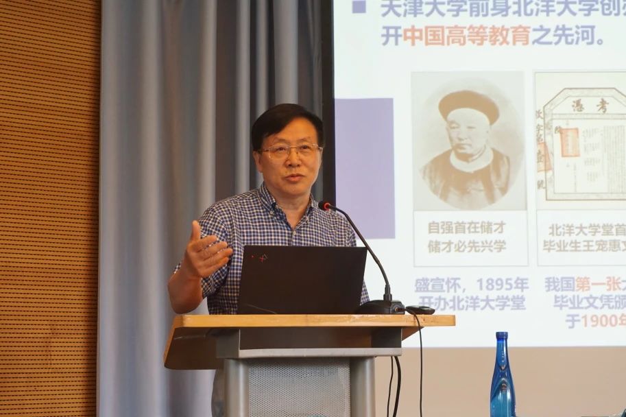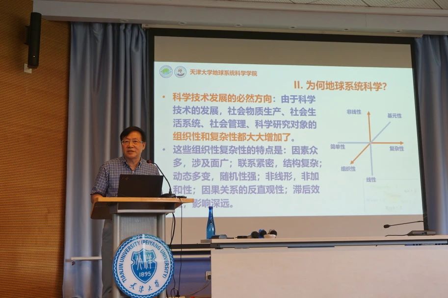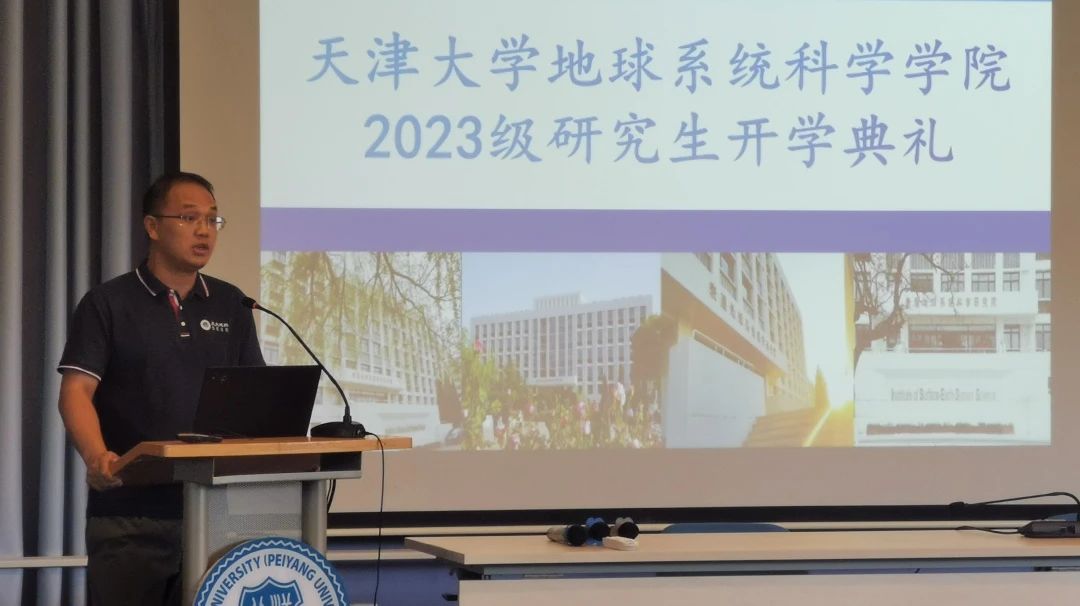 接着,刘丛强院士为新生讲授“开学第一课”。他介绍了天津大学地科院建院背景、天大地学发展历史和近年来地科院的建设成果,深入浅出地讲解地球系统科学与地理学的内在关系,并就如何成功完成研究生学业向同学们提出了自己建议。