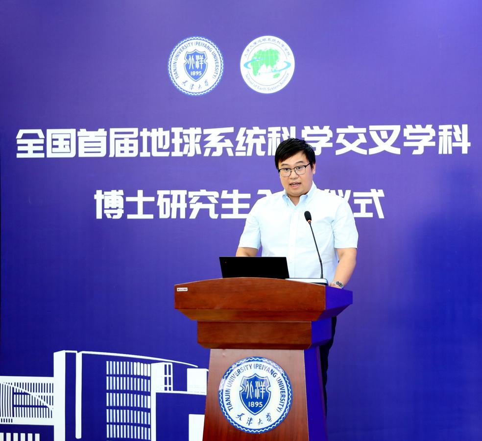 天津大学党委常委、常务副校长胡文平,天津市教委科技与研究生工作处处长、学位办主任苏丹分别代表学校和天津市教育主管部门致辞。地科院教授朱佳雷作为首届地球系统科学交叉学科博士生导师代表发言。学校相关部门负责同志、地科院全体研究生导师参加仪式。