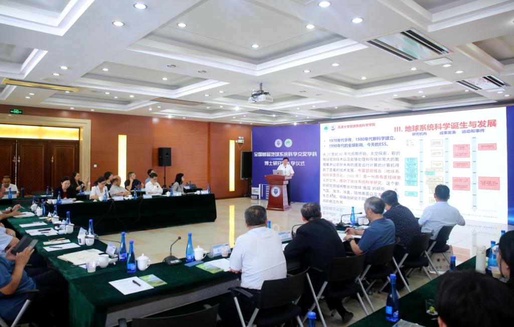 中国科学院院士、中国地质大学(武汉)校长王焰新,中国科学院院士于贵瑞和10位国务院学位委员会地球物理学、生态学、地理学、地质学、大气科学、海洋科学等六个学科评议组成员,包括中国科学院院士潘永信,中国科学院大学党委常务副书记王艳芬,南开大学碳中和交叉科学中心主任周启星,首都师范大学副校长李小娟,国际欧亚科学院院士、北京师范大学教授史培军,南京大学地理与海洋科学学院院长鹿化煜,兰州大学副校长潘保田,南京大学地球科学与工程学院教授王汝成,北京大学海洋研究院院长胡永云,中国科学院海洋研究所所长王凡到会见证,与天大师生共话地球系统科学学科发展。
