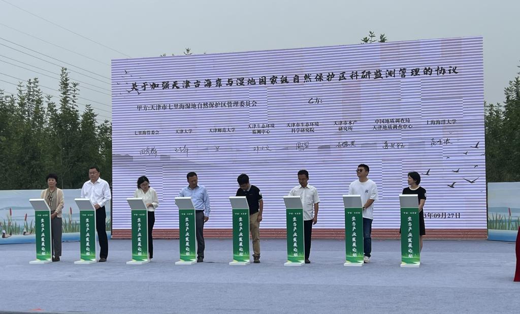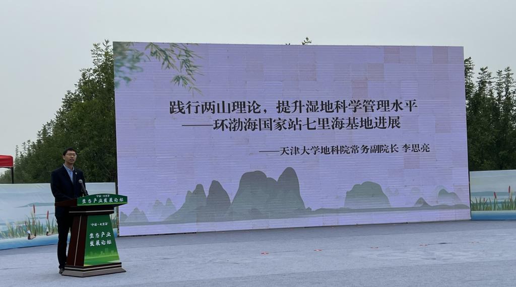 论坛上,七里海管委会先后与上海海洋大学、天津大学、天津师范大学、天津生态环境监测中心、天津市生态环境科学研究院等七家科研机构签订“科技助保护”系列科研项目合作协议,推动生态环境不断向善向好。我院常务副院长李思亮教授就天津环渤海滨海地球关键带国家野外科学观测研究站(以下简称“环渤海国家站”)七里海基地进展做专题分享。环渤海国家站副站长王铁军教授参加与七里海湿地自然保护区管理委员会共建协议签署仪式,约定合作开展对七里海湿地的研究与分析,以理论实践相结合的方式助推七里海绿色高效发展。