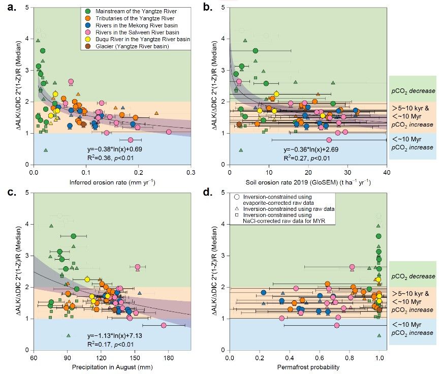 图2 化学风化对碳循环的影响随侵蚀、降雨和冻土梯度的变化