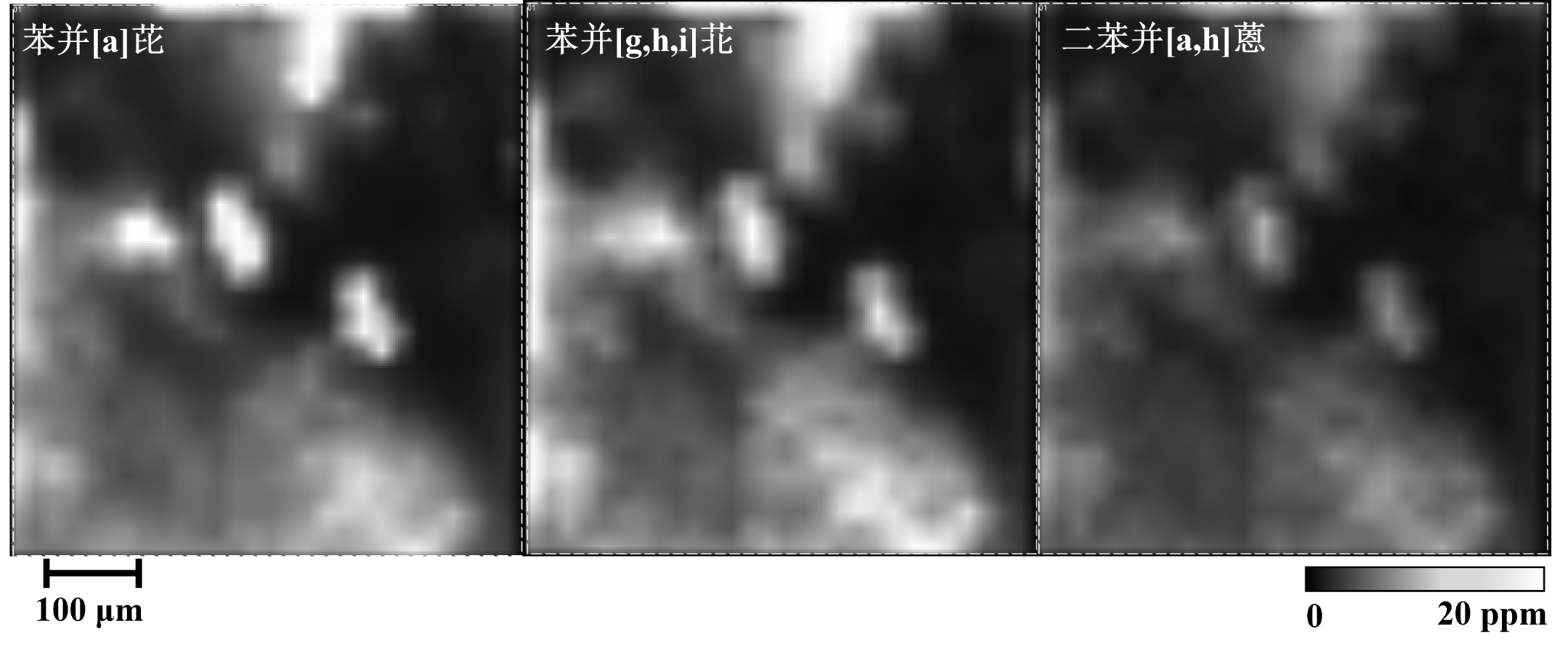 图3 污染土壤中不同浓度苯并[a]芘、苯并[g,h,i]苝和二苯并[a,h]蒽质谱成像图谱