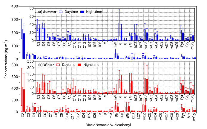 该研究以题目为“Molecular distributions of diacids, oxoacids and a-dicarbonyls in summer- and winter-time fine aerosols from Tianjin, North China: Emissions from combustion sources and aqueous phase secondary formation”被《地球物理学研究期刊》(Journal of Geophysical Research: Atmospheres)正式接收。
