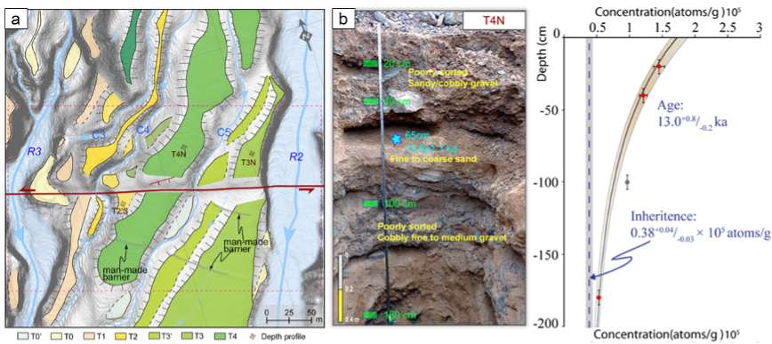 图2 微构造地貌的精细解译及关键地貌面废弃年龄的测定